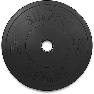 Suprfit Gummierte Fitness Bumper Plates 50mm Gewichtsscheiben aus Vollgummigranulat - Gewicht: 5-25kg, Stoßabsorbierende Hantelscheiben 50mm fürs Hanteltraining, Gewichtscheiben - Farbe: Schwarz