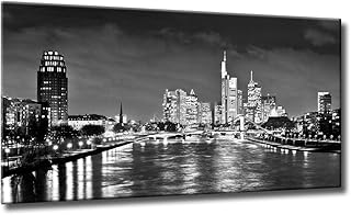 Leinwanddruck Skyline Frankfurt Größe: 70 x 125 cm | Kunst Bild Frankfurt Nacht Skyline Schwarzweiß | Die Frankfurter Skyline bei Nacht | Farbe: schwarzweiss | Rubrik: Frankfurt + Städte