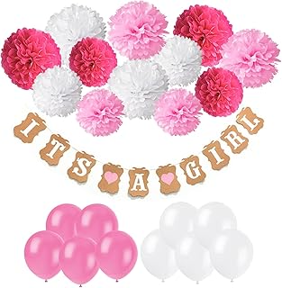 Recosis It's A Girl Papier Girlande Banner Dekoration mit 12pcs Seidenpapier Pom Poms und 20pcs Luftballons für Baby Shower Baby Dusche Girlande Dekoration, Party Foto Requisiten und Baby Deko