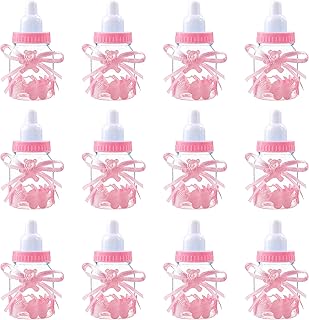 MaoXinTek Süßigkeiten Flasche Schön Wiederverwendbar Baby Candy Flaschen Geschenkbox Baby Candy BoxFavors Dekorationfür Babydusche Party Taufe 12 Stück Rosa
