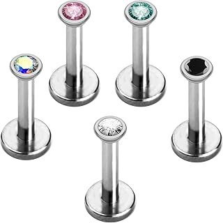 Labret Lippen Piercing 16 g BodyTrend – You Get 5 Stück, einer je Farbe – intern Gewinde Push Ball, die mit Swarovski Kristallen – Bling Bling. – Chirurgenstahl 316L – in vielen Größen erhältlich