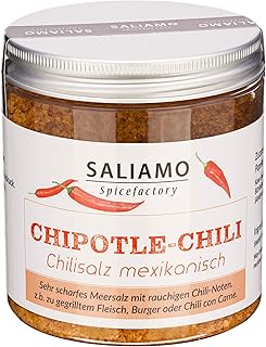 250g Meersalz mit Chili, sehr scharfes Salz, BBQ Gewürz, Chipotle Chili, Birdeye Chili, Paprika rot Rauchsalz, Chipotle Chili - Chilisalz mexikanisch | Saliamo