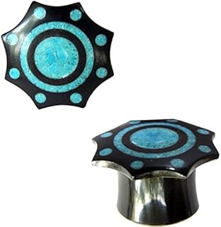 Horn Plug schwarz Inlay in türkis Tribal Buffalo handgeschnitzt Tunnel, Ohrstecker