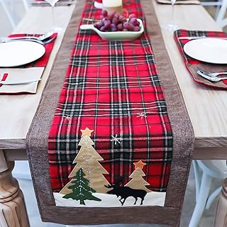 Tischläufer 35 x 180 cm Stickerei Elch Baum Rot-bunt Weihnachten Weihnachtsdeko Weihnachtstischdecke Mitteldecke Tischdeko Tischdecke Baumwolle Leinen ideal für Weihnachtsrichtung & Weihnachtsgeschenk