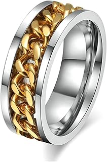 Männer Ring Bandring mit Bicolor Kette Drehbar Paarringe Hochzeit Ring Edelstahl Verlobungsring für Mann