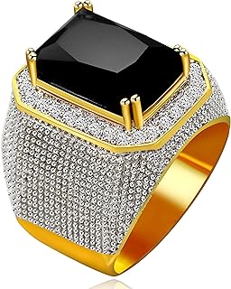 Herren-Ring, groß, rechteckig, simulierter schwarzer Onyx, Hip Hop-Ring, vergoldet, breiter Hochzeits-/Verlobungsring RA408