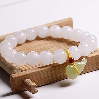 Viel Glück Feng Shui Reichtum Natürliche Hetian White Jade Perle Kürbis Anhänger Armreif Charme Armband Für Frauen Feng Shui Lucky Chinese Geschenke Ziehen Sie Geld für Glück,10mm